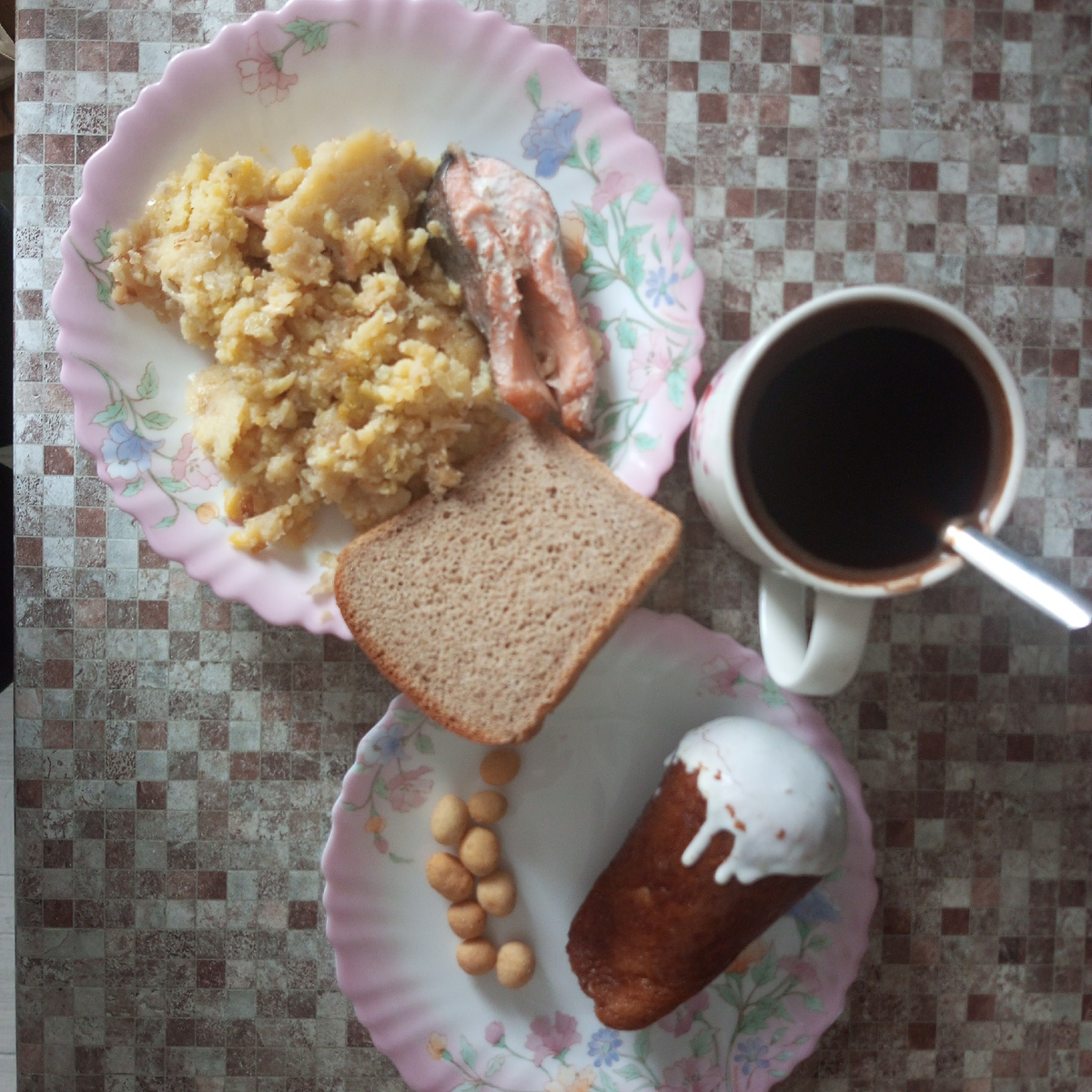 - Завтрак 2 февраля: картофельное пюре с жареным луком, форель, кофе и сладости для детей.
