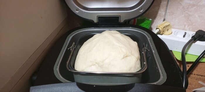 Тесто должно получиться легким и не липнущим к рукам. После замеса необходимо оставить его в хлебопечке на 1 час 30 минут или в теплом месте, накрыв пленкой. Оно должно увеличиться в размере минимум в два раза.