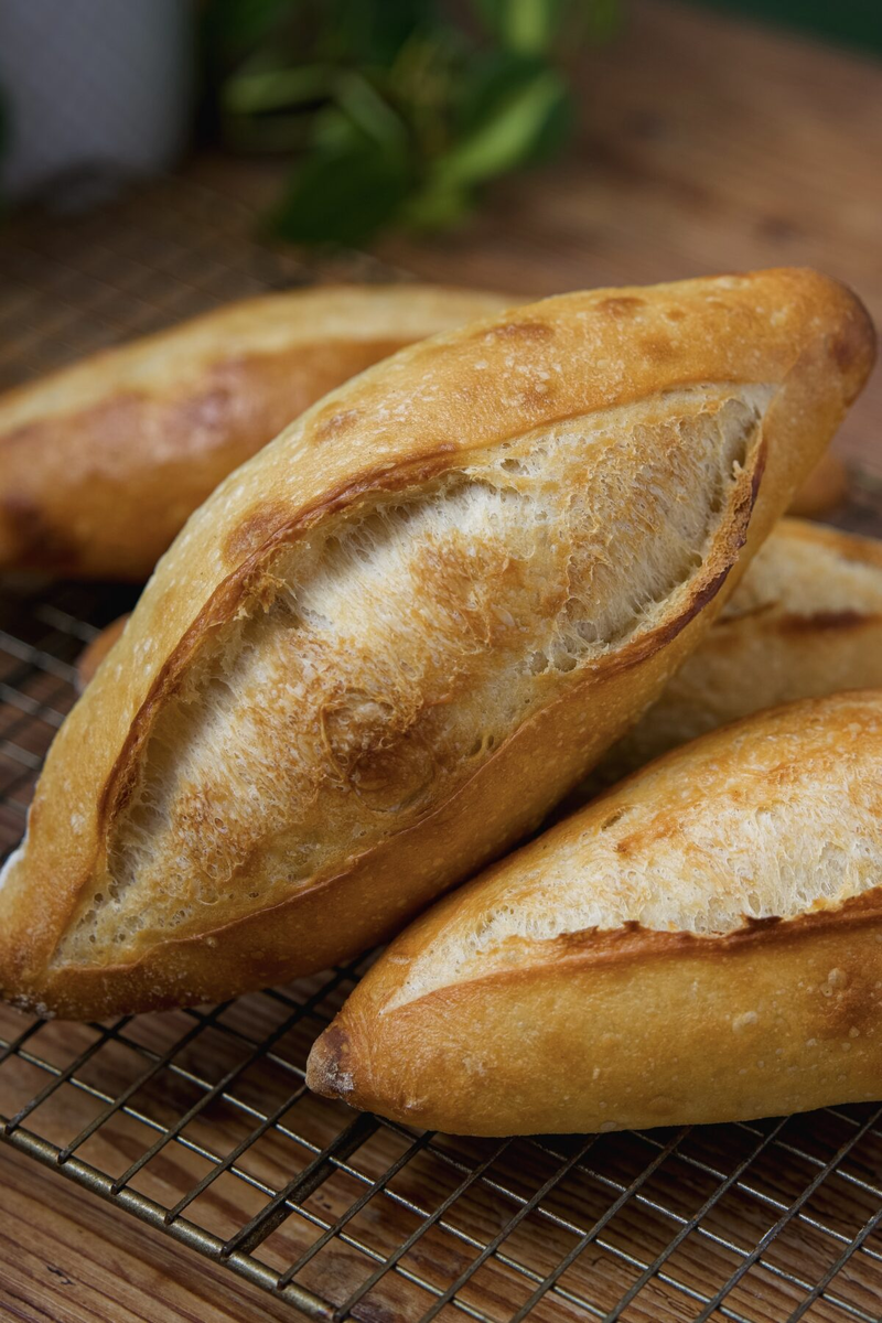 Эти батоны обладают особенной хрустящей корочкой и мягкой, воздушной мякотью. Они идеально подходят для того, чтобы откусить их, замять в руках и запить холодным молоком.