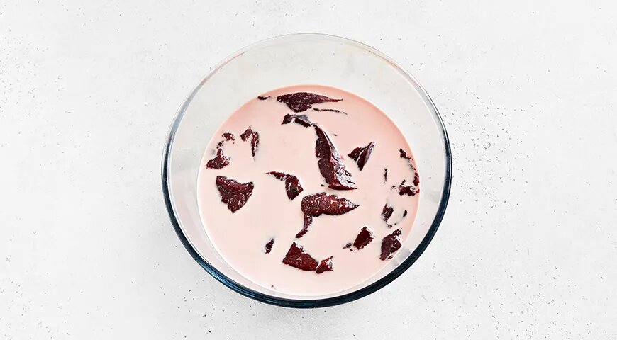 Для создания удивительно вкусного печеночного торта необходимо начать с подготовки говяжьей печени. Первым делом ее очищают от пленок и нарезают на небольшие кусочки. Затем печень помещают в молоко на 1-2 часа, чтобы избавиться от горечи. Чем дольше печень проведет в молоке, тем нежнее будет ее вкус. По истечении времени молоко сливают, а саму печень промывают под проточной водой.