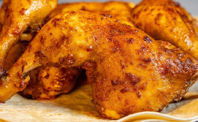 Минимум специй — это соль, перцы и несколько часов в маринаде гарантируют глубокий вкус. Перед жаркой разогрейте сковороду до средней температуры, выложите курицу кожей вниз и прикройте прессом, используя пергамент и кастрюлю с горячей водой. Это обеспечит равномерную прожарку, хрустящую корочку и сочность внутри.