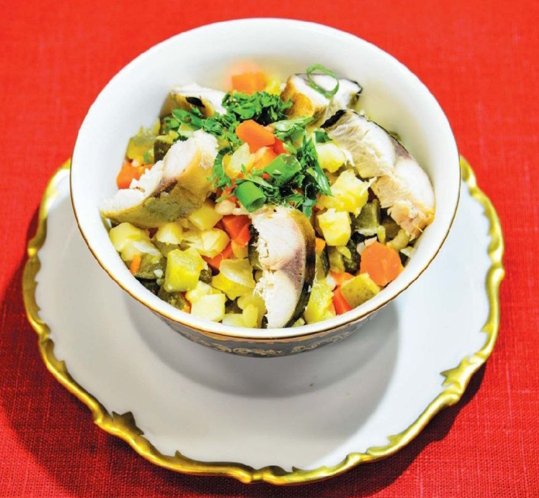 Постный Оливье с копченой скумбрией
