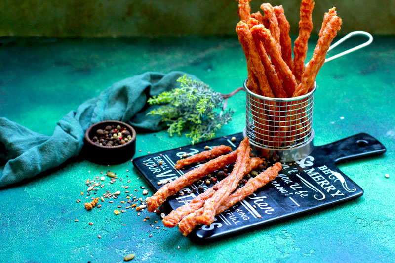 Тонкие, успокаивающе нежные куриные колбаски из постного мяса можно легко приготовить и хранить даже без холодильника. Эти деликатесы подойдут для дегидратора, конвекционных духовок и некоторых аэрогрилей.