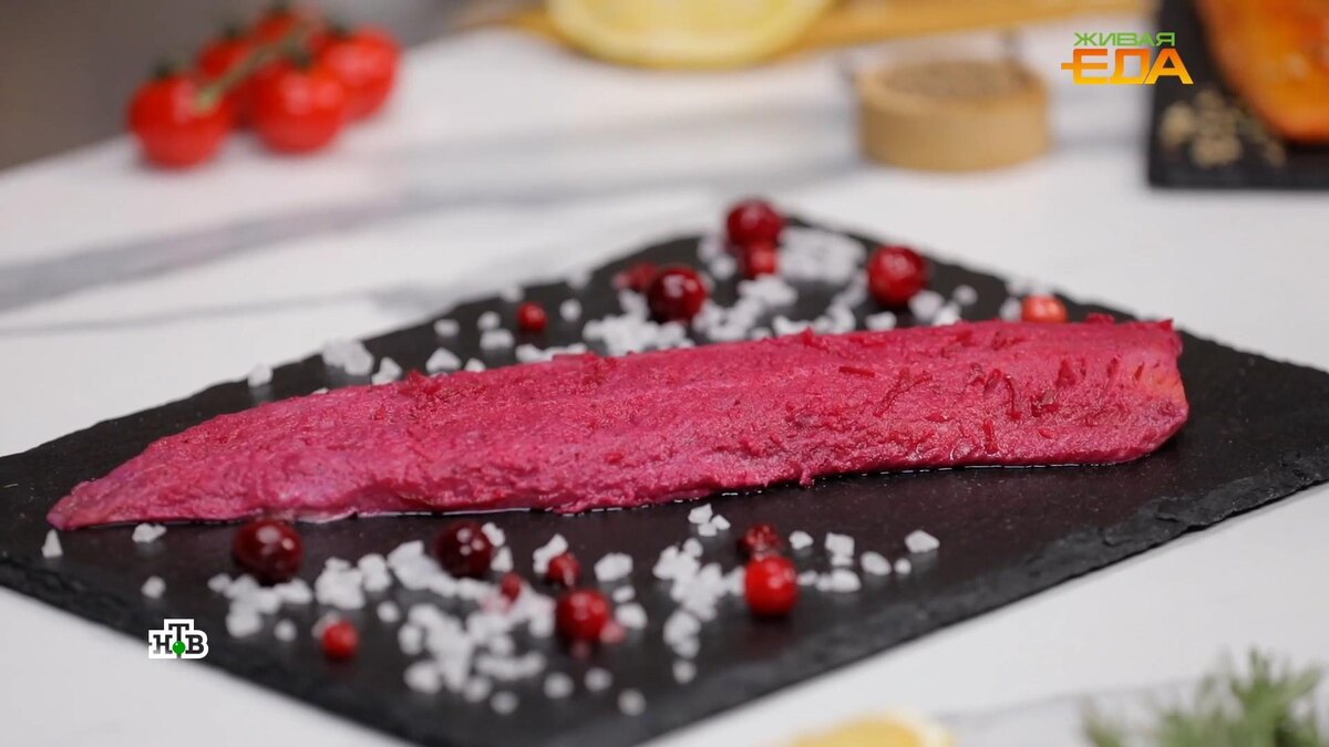 2. **Маринад.** Состоит из размятых ягод клюквы и брусники, к которым добавляется натертая свекла. Полученной смесью накройте филе, и отправьте его в холодильник на всю ночь. Этот шаг позволяет рыбе пропитаться вкусами и ароматами.