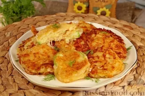 - Кабачки в кефирно-сырном кляре: Нежные кабачки, обжаренные в сырном кляре, станут отличным началом дня.