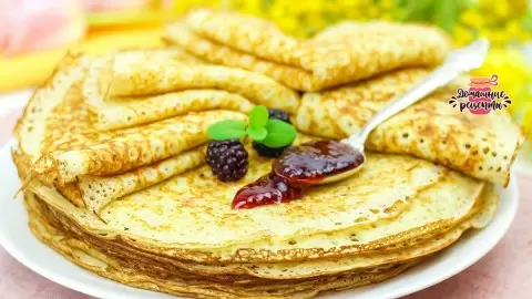 Порадуйте близких кружевными дрожжевыми блинами, которые легко готовить и не требуют соды! Эти тонкие и румяные лакомства обладают хрустящими краями, а их поверхность вся в маленьких дырочках — просто глаз радуется!