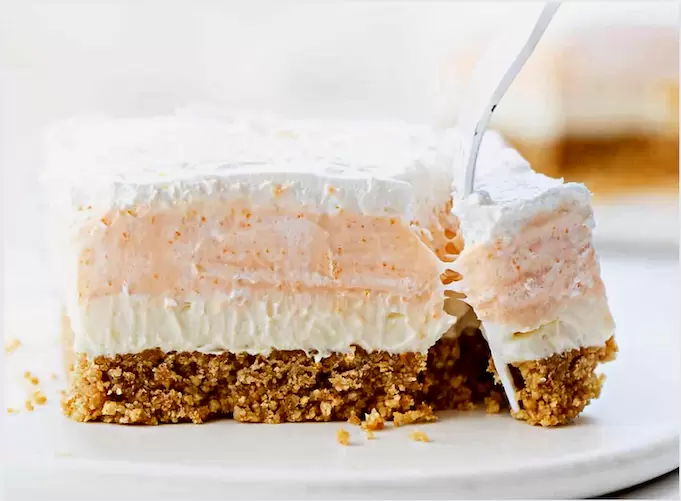 Эти апельсиновые кремовые батончики поражают своей легкостью, поскольку хрустящий корж из печенья служит основой для бархатного сырного слоя, покрытого ярким апельсиновым кремом. Каждый кусочек приносит свежесть и наслаждение, делая десерт идеальным для любого времени года.