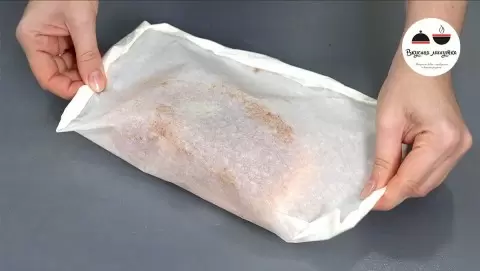 Не забудьте использовать специальную бумагу для выпечки. Обрежьте несколько квадратов так, чтобы каждый кусочек можно было завернуть. На бумагу положите подготовленную грудинку, добавьте немного розового перца и лавровый лист. Заверните края бумаги, сформировав конвертик, и оставьте на 1,5 часа для маринования.