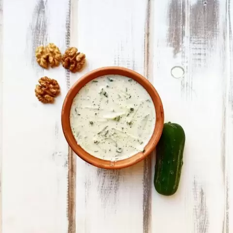 Начать нужно с того, чтобы тщательно перемешать йогурт с холодной водой до образования однородной консистенции. Затем к этой смеси добавляются нарезанные огурцы, измельченные грецкие орехи, чеснок и укроп. Не забудьте заправить все оливковым маслом и уксусом, добавляя соль по вкусу!