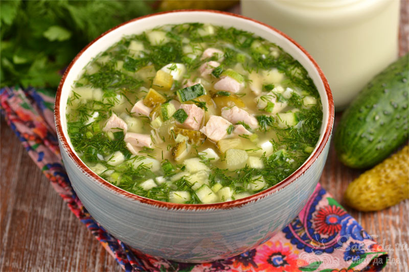 Суп на основе кваса быстро завоевал популярность, а при дворе Петра I был упомянут в записях датского посла. Он описывал, как наслаждался «супом, сваренным из пивного уксуса с мелко нарезанным луком и перцем». Вероятно, уксус был аналогом кваса — кислым напитком, похожим по вкусу.