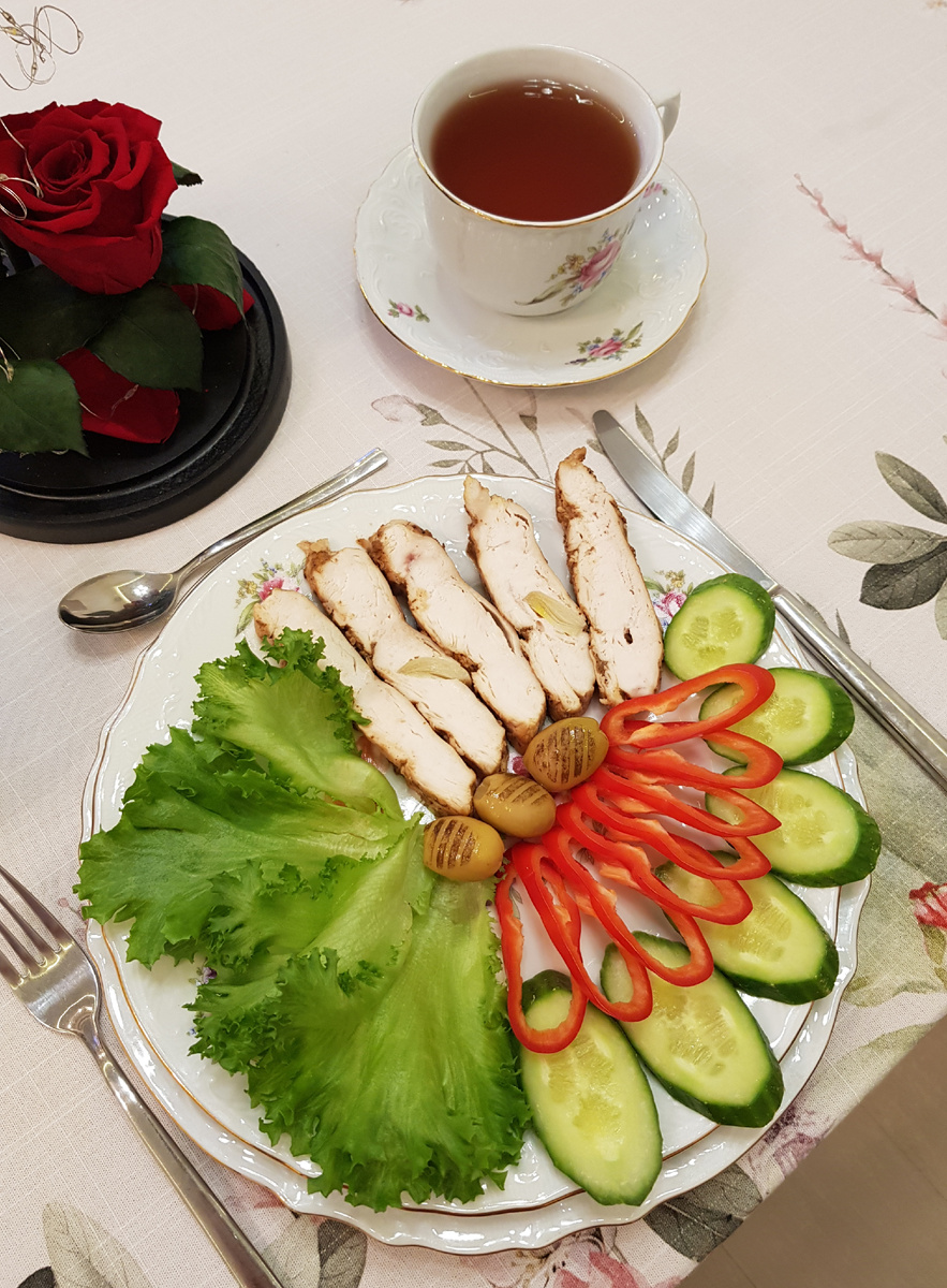 После приготовления дайте куриному мясу «отдохнуть» на 10 минут, чтобы соки распределились равномерно. Нарежьте грудки на порции и подавайте их с освежающими огурцами, сладким перцем и листьями салата. Приятного аппетита!