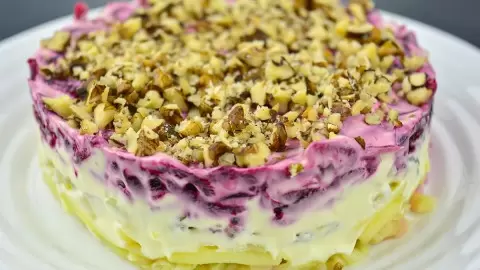 Продолжаем с слоем свеклы, который также необходимо покрыть майонезом. И, наконец, завершающим аккордом станут грецкие орехи. Их нужно мелко нарубить так, чтобы остатки вовсе не превратились в крошку, что придаст блюду текстуру и изысканный вкус.