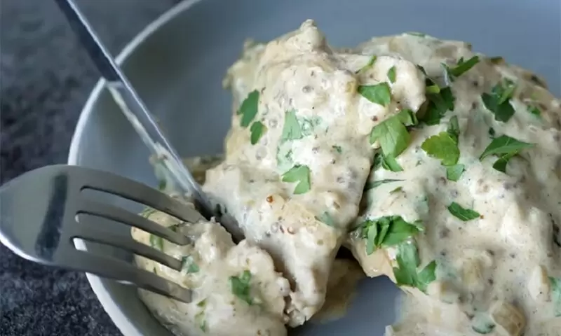 1. В глубокой сковороде с жирным дном растопить сливочное масло. Выложить курицу в один слой, приправить солью, percem и зирой. Обжарить до золотистой корочки - важно не пересушить мясо, а лишь создать аппетитную оболочку.