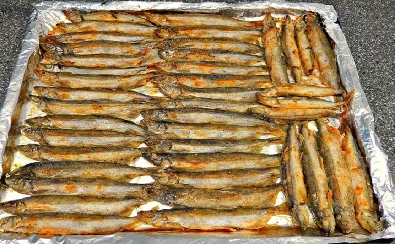 - 1 кг свежей и очищенной мойвы без голов и внутренностей.