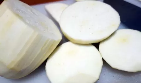 Для начала необходимо выбрать самые молодые и крупные баклажаны. Их следует очистить и нарезать кружочками толщиной около 0,5 см. Можно сразу приготовить большую партию и закатать банки для зимнего хранения.