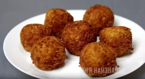 В глубокой сковороде разогревается масло, и шарики обжариваются до золотистой корочки. Готовые деликатесы выкладываются на бумажное полотенце, чтобы стекло лишнее масло.