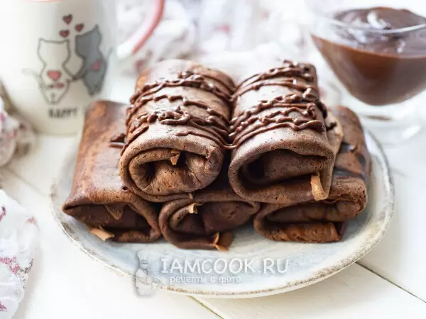 Шоколадные блины с творогом — легкая сладость с мягким кремовым центром: творог, сметана и немного сахара позволяют получить нежную начинку, которая не перегружает и хорошо сочетается с какао в тесте.