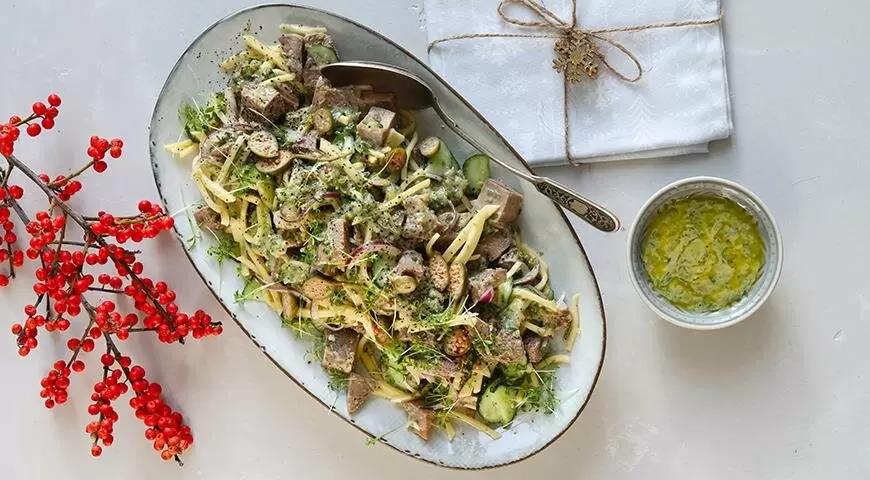 Салат с языком, сыром и каперсами — это не просто блюдо, а настоящее кулинарное произведение искусства, способное украсить любое праздничное застолье. А с добавлением теплого поджаренного зернового хлеба он легко превратится в полноценный обед или ужин.