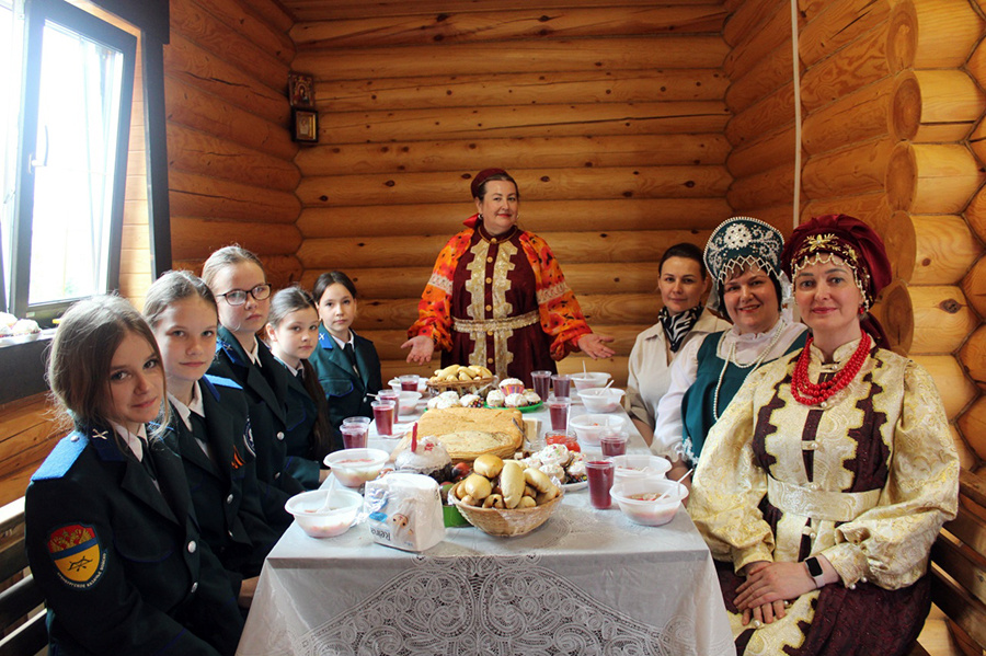 Галина Сопина, главный специалист отдела, рассказала о разнообразии блюд русской кухни. Некоторые названия, такие как ушное, скоблянка, шаньга и взвар, стали для ребят настоящей находкой. Она также поделилась историей старинных названий шашлыка, таких как «мясо верчёное» и «мясо на вертеле».