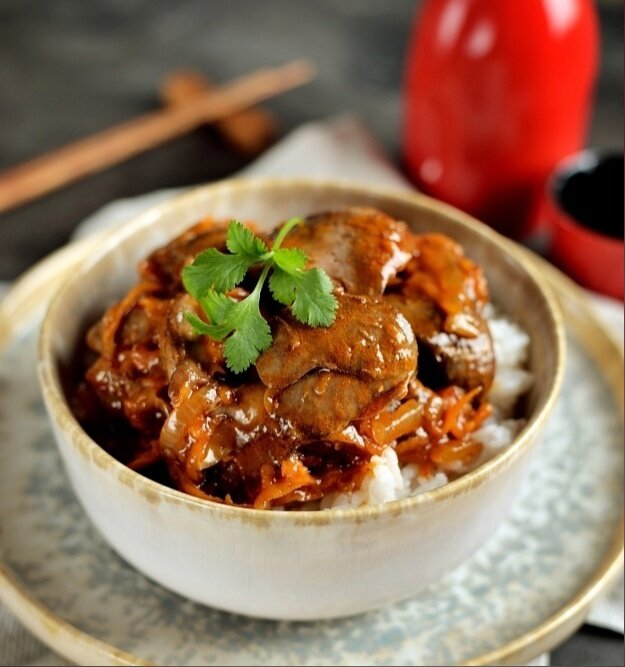 Это великолепное блюдо отлично сочетаться с варёным рисом и свежими листьями кинзы в качестве украшения.